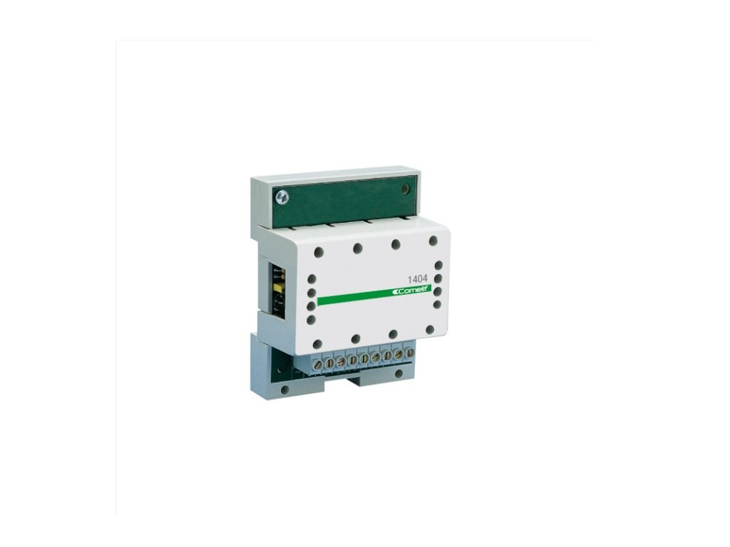 Prepínacia jednotka 1404 pre zapojenie 2 dverných jednotiek systému SB2, napájanie zo zbernice, rozmery 35 x 90 x 58 mm, inštalácia na DIN lištu (2 pozície)