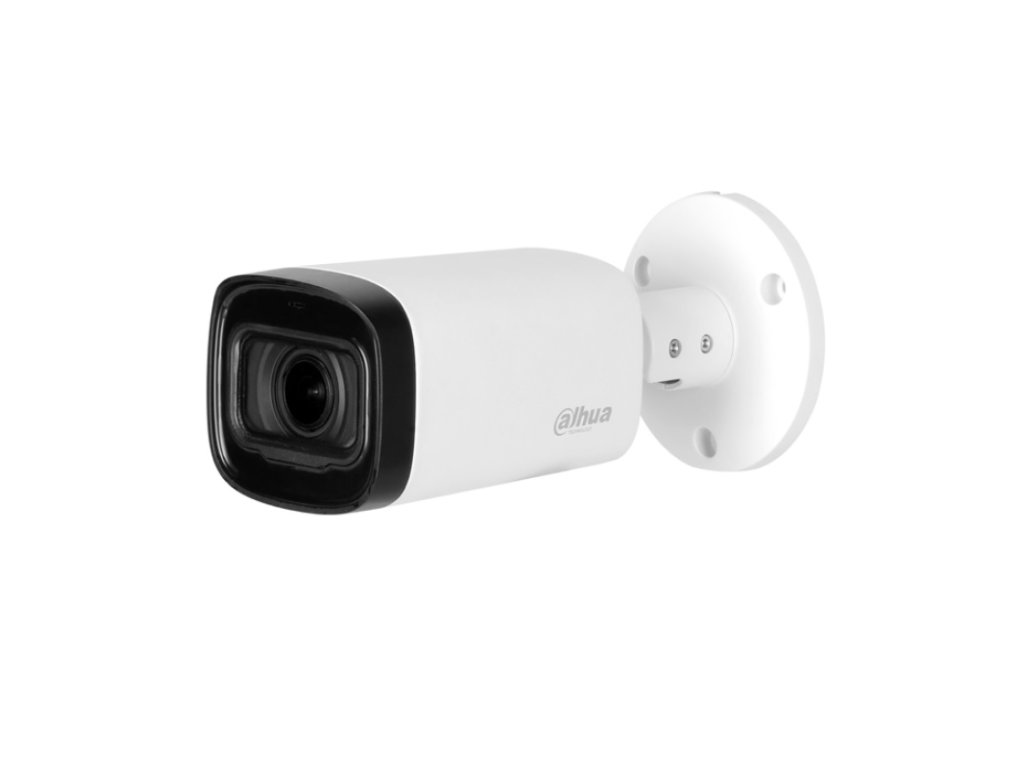 5 Mpx kompaktná HDCVI kamera, Day/Night, Smart IR prísvit s dosvitom 60 m, 1/2.7" CMOS, rozlíšenie 2880 × 1620 px (16:9) @ 25 fps, citlivosť 0,005 lx / F1.6, 30 IRE, 0 lx IR on, motorický zoom objektív 2,7–12 mm, uhol záberu H: 107°–34°, V: 55°–19°, D: 130°–39°, AWB, DWDR, AGC, BLC, HLC, 2D DNR, vstavaný mikrofón, IP 67, pracovná teplota od -30 °C do +60 °C, napájanie 12 V DC ±30 %, spotreba max. 9,8 W (IR on), rozmery 209,9 × 90,4 × 90,4 mm, hmotnosť 0,55 kg