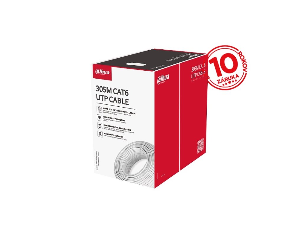 Dahua dátový kábel UTP, CAT6, priemer jednej žily je 0,53 mm, priemer celého kábla je 6 mm, PVC, balenie 305 m / kartón, možno objednať len celé balenie