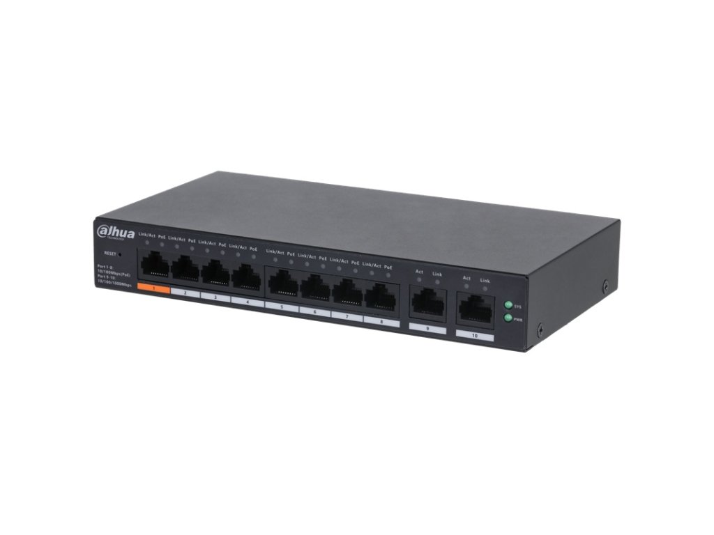 - 10portový PoE switch