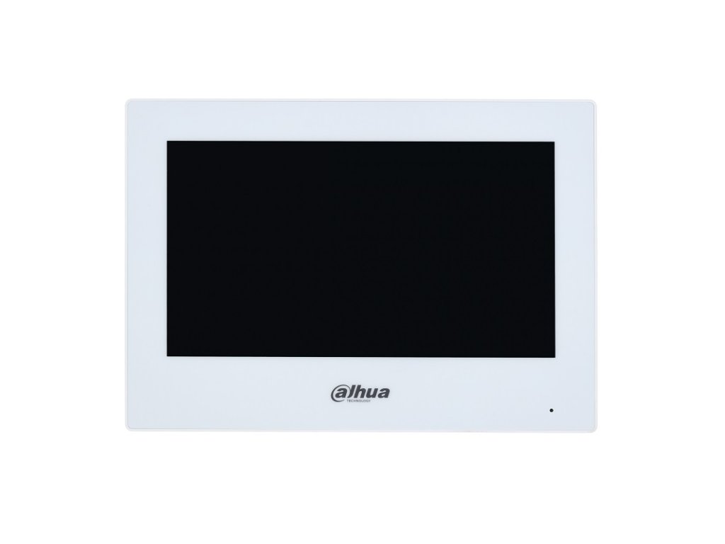 IP Dahua handsfree videomonitor, prevedenie biely plast, 7" farebný dotykový LCD displej s rozlíšením 1024 x 600 px, H.264 a H.265 kompresia, TCP/IP komunikácia, bez možnosti Wi-fi pripojenia, grafické menu, možnosť automatického vytvorenia obrázkov pri neprijatom hovore alebo videa pri zanechaní odkazu po vložení micro SD karty (nie je súčasťou balenia), interkom v rámci viacerých monitorov v byte (max. 6 monitorov), pripojiteľnosť až 20 dverných jednotiek a externých CCTV Dahua IP kamier, podpora prenosu video hovoru / push notifikácie na Android a iOS smartfony cez internet (aplikácia DMSS), 1x RJ-45 konektor pre pripojenie do siete, 6x NO kontakt pre pripojenie alarmových vstupov - funkcia EZS ústredne, 1x NO alarmový výstup, ovládanie 2 zámkov, prizvonenie od dverí, napájanie externým zdrojom 12 V DC / 1000 mA (zdroj nie je súčasťou balenia), alebo PoE 802.3af switchom, montáž na povrch, rozmery 189,6 x 134,6 x 26,0 mm, interiérové použitie