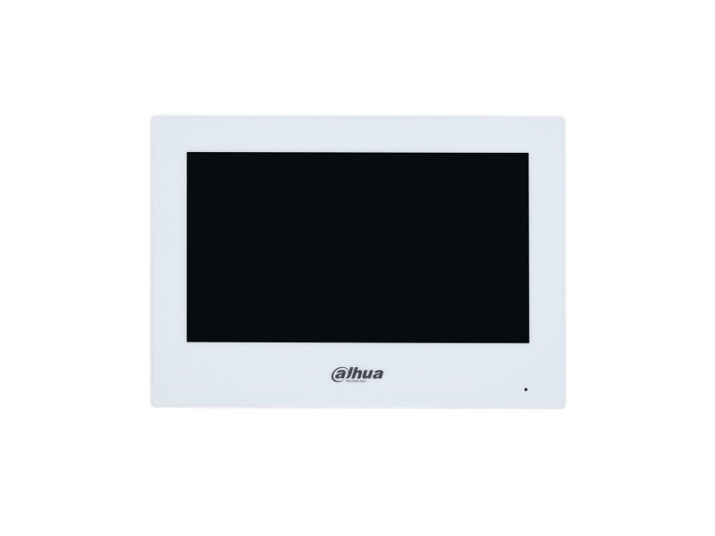 IP Dahua handsfree videomonitor, prevedenie biely plast, 7" farebný dotykový LCD displej s rozlíšením 1024 x 600 px, H.264 a H.265 kompresia, TCP/IP komunikácia, Wi-fi, grafické menu, možnosť automatického vytvorenia obrázkov pri neprijatom hovore alebo videa pri zanechaní odkazu po vložení micro SD karty (nie je súčasťou balenia), interkom v rámci viacerých monitorov v byte (max. 6 monitorov), pripojiteľnosť až 20 dverných jednotiek a externých CCTV Dahua IP kamier, podpora prenosu video hovoru / push notifikácie na Android a iOS smartfony cez internet (aplikácia DMSS), 1x RJ-45 konektor pre pripojenie do siete, 6x NO kontakt pre pripojenie alarmových vstupov - funkcia EZS ústredne, 1x NO alarmový výstup, ovládanie 2 zámkov, prizvonenie od dverí, napájanie externým zdrojom 12 V DC / 1000 mA (zdroj nie je súčasťou balenia), alebo PoE 802.3af switchom, ak používate externý zdroj a funkciu Wi‑Fi, použite zdroj 12 V DC / min. 2 A, montáž na povrch, rozmery 189,6 x 134,6 x 26 mm, interiérové použitie