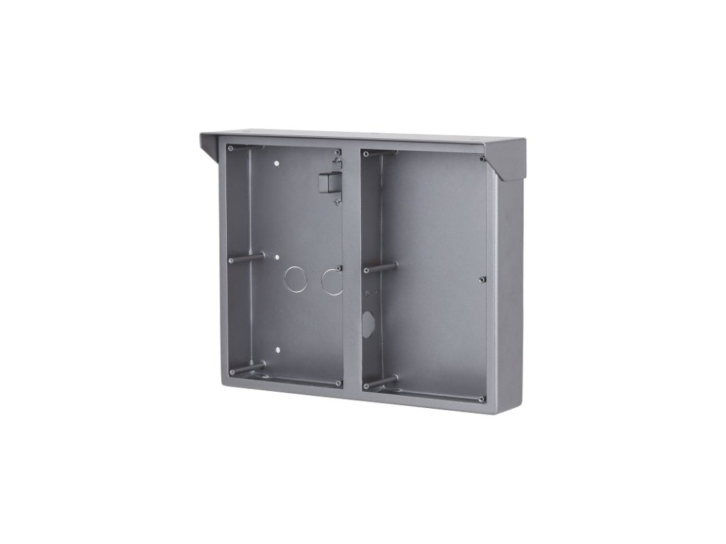 Inštalačná krabica so strieškou pre 2 x 2 moduly a rámik IP modulárneho systému Dahua VTO4202F, na omietku, hliník, rozmery 241 x 282 x 88 mm, pre inštaláciu sú potrebné dva rámiky VTM125