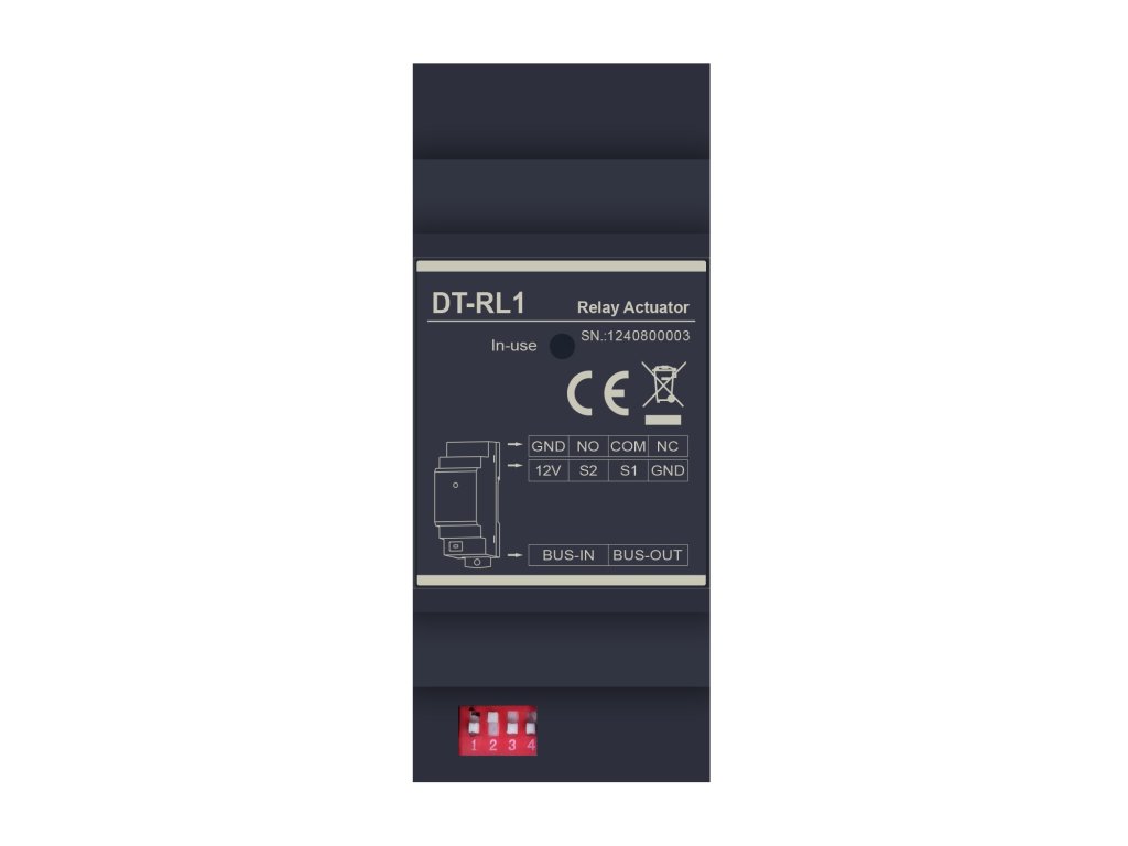 Modul zbernice pre spínanie relé, použitie pre možnosť ovládania 2. zámku pri dverných jednotkách s jedným zámkom, NO/NC kontakt, nastavenie dĺžky zopnutia kontaktu , adresácia DIP prepínačmi, rozmery 90,0 x 35,0 x 58,4 mm, inštalácia na DIN lištu, vnútorné použitie.