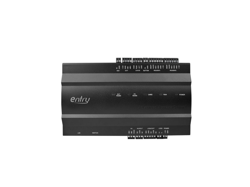 IP prístupový kontrolér, pripojenie 2x RFID čítačiek (Wiegand) alebo 2x biometrických čítačiek FR1200 alebo FR1500 (RS485), ovládanie 1 dvier obojsmerne, kapacita 3 000 odtlačkov, 30 000 užívateľov, 100 000 udalostí, komunikácia s PC cez TCP/IP alebo RS485, LED signalizácia stavov, 1x NO/NC relé zámku (5A/30VDC), 1x relé vstup dverného kontaktu, 1x relé vstup odchodového tlačidla, 1x relé univerzálny AUX vstup, 1x relé univerzálny AUX výstup (2A/30VDC), napájanie 9,6 - 14,4 VDC, odber max. 1,5A/12VDC (zdroj nie je súčasťou), rozmery 185x106x36mm (vhodná inšt. krabica KR380 + napájací zdroj HDR-15-15), montáž na DIN lištu, interiérové použitie, umiestnenie v chránenej zóne, možnosť centrálneho ovládania viacerých kontrolérov. Pripojenie a nastavenie kontroleru je možné vykonať s Entry ZKBioAccess Security System softvérom.