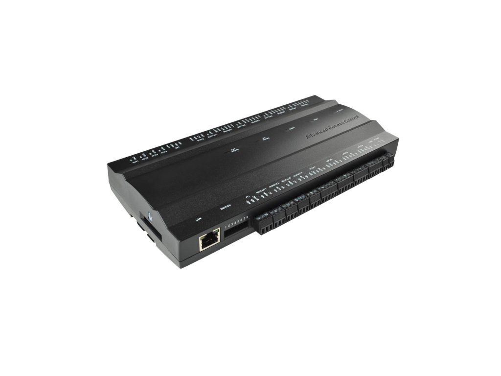 IP prístupový kontrolér, pripojenie 4x RFID čítačiek (Wiegand) pre ovládanie 4 dvier jednosmerne alebo pripojenie 8x biometrických čítačiek FR1200 (RS485) pre ovládanie 4 dvier obojsmerne, kapacita 3 000 odtlačkov, 30 000 užívateľov, 100 000 udalostí, komunikácia s PC cez TCP/IP alebo RS485, LED signalizácia stavov, 4x NO/NC relé zámku (5A/30VDC), 4x relé vstup dverného kontaktu, 4x relé vstup odchodového tlačidla, 4x relé univerzálny AUX vstup, 4x relé univerzálny AUX výstup (2A/30VDC), ovládací softvér súčasťou, napájanie 9,6 - 14,4 VDC, odber max. 1,5A/12VDC (zdroj nie je súčasťou), rozmery 226x106x36mm (vhodná inšt. krabica KR380 + napájací zdroj HDR-15-15), montáž na DIN lištu, interiérové použitie, umiestnenie v chránenej zóne, možnosť centrálneho ovládania viacerých kontrolérov cez softvér Entry ZKBioAccess Security System softvérom, podpora funkcií Online monitoring, Kalendár, Priechodzia časová zóna, Anti-passback, Linkovanie Aux výstupov, Interlock, Multi card autorizácia a pod