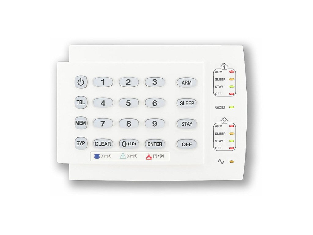 LED klávesnica pre radu SP / MG, zobrazenie prvých 10 zón, oddelená indikácia 2 podsystémov, režim StayD, 1 Klávesnicová zóna, podsvietené klávesy s rôznofarebné indikáciou stavu zón, max. prúdový odber 72 mA