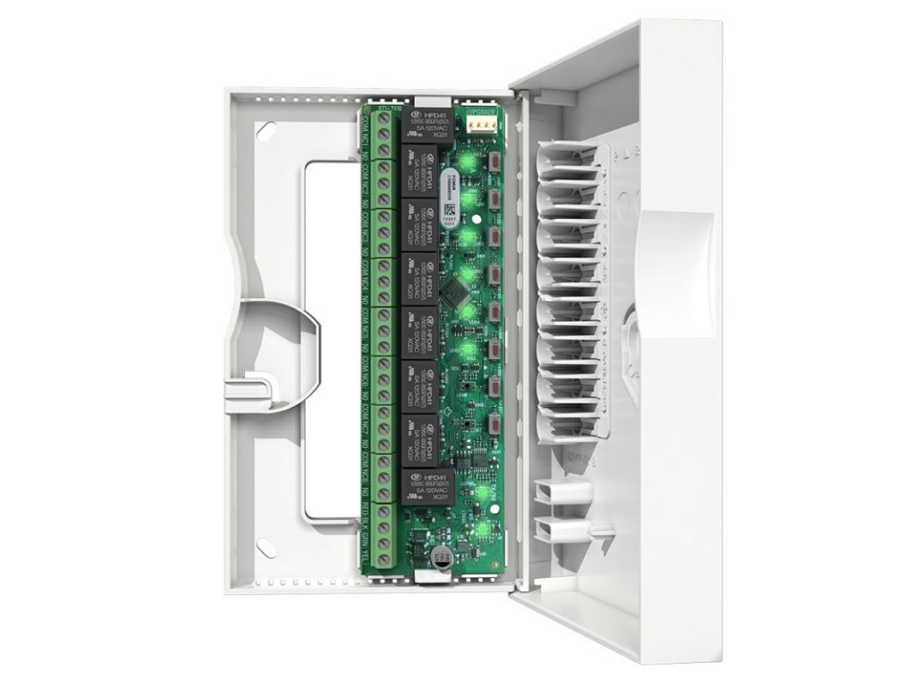 Zbernicový modul s 8x PGM relé 4 A / 24 V, v plastovom kryte, kompatibilita s ústredňami s FW 6.80 a viac, Babyware 5.1.0 a viac, výstupy je možné ovládať pomocou tlačidiel, LED signalizácia výstupov, max. prúdový odber 315 mA, rozmery krytu 165 x 102 x 25 mm