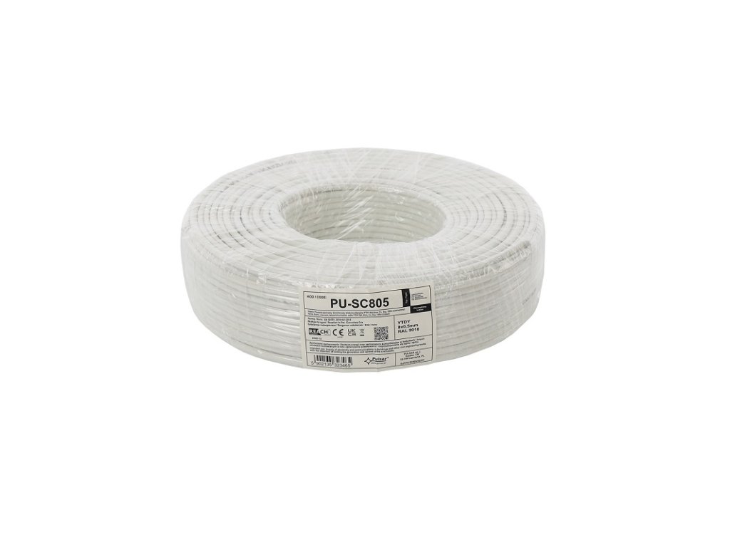 Signálny kábel pre EZS, izolované medené drôty 8 x 0,5 mm, farebné rozlíšenie, bez tienenia, biela PVC izolácia, značenie na plášti, balenie 100 m