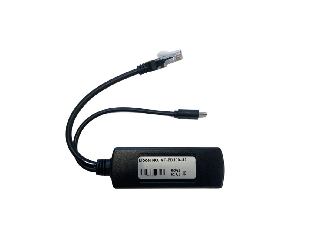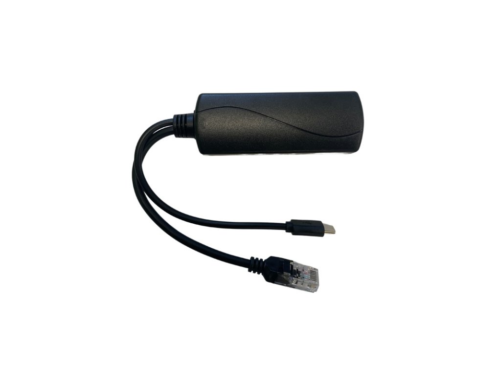 Micro USB Splitter, vstup RJ-45 10/100 PoE (IEE 802.3af), výstup 1x Micro USB (5 V / 2 A) a 1x RJ-45 10/100, dĺžka kábla 205 mm, rozmery 82 x 28 x 23 mm, pracovná teplota od 0 °C do +50 °C, hmotnosť 56 g