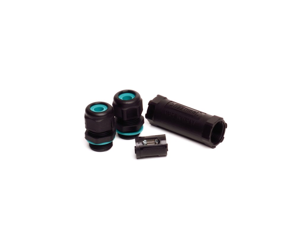 Quadrosense prepojovací / ukončovací izolačný člen pre plotový detekčný systém, určený pre ukončenie detekčného kábla (na strane vyhodnocovacej jednotky nie je potrebný) jeho nadpojenie, alebo spojenie detekčného kábla s DC prepojovacím káblom vedúcim do vyhodnocovacej jednotky, vodotesné prevedenie